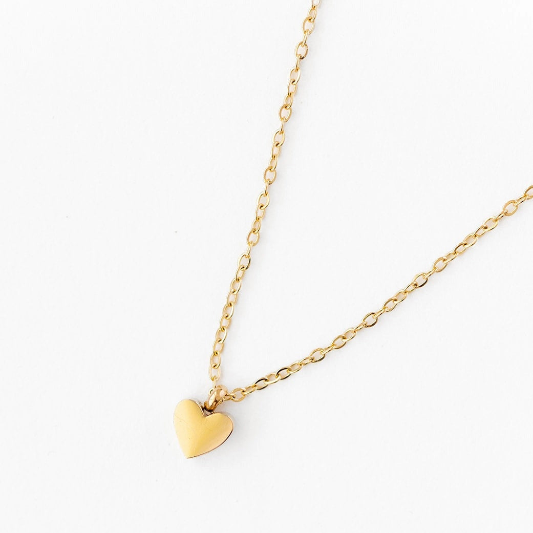 Dress up daily with our Gold Pendant Necklace with Heart Charm. This cute delicate necklace features a dainty gold pendant adorned with a Heart, designed to add a classic touch to an every day. This necklace is a timeless keepsake, we guarantee she will love.